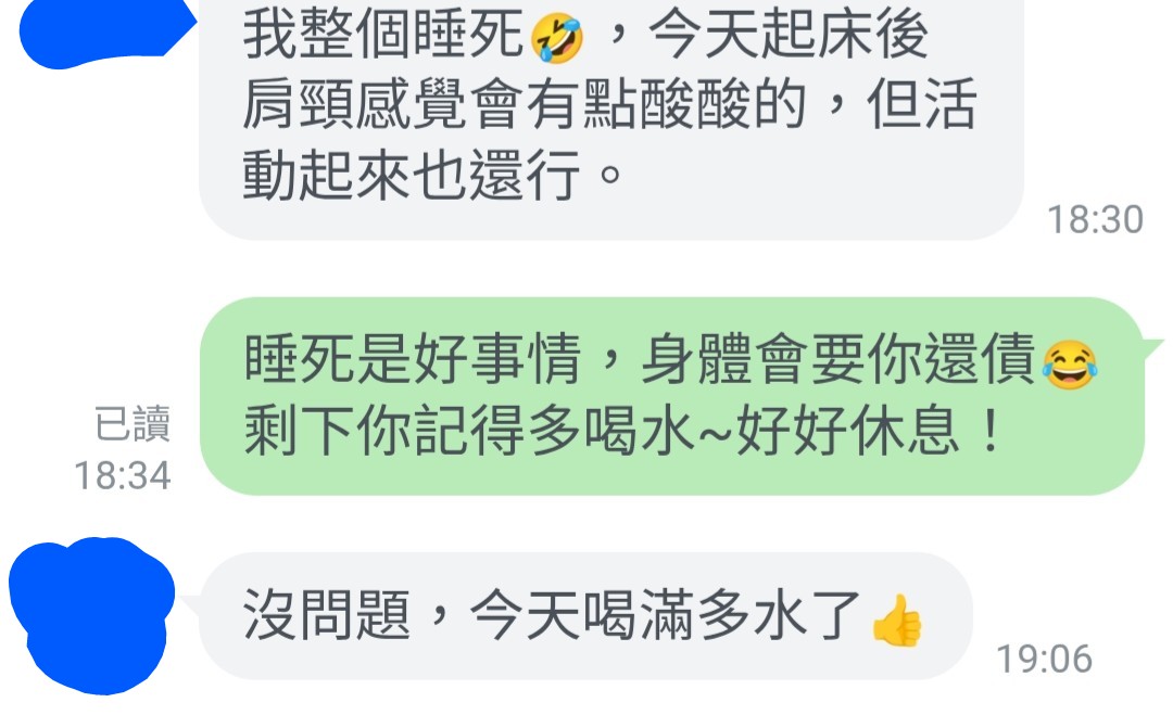 放鬆腰背肌肉後懸空感消失,成功正躺!回去後終於能夠好好睡上一覺😴